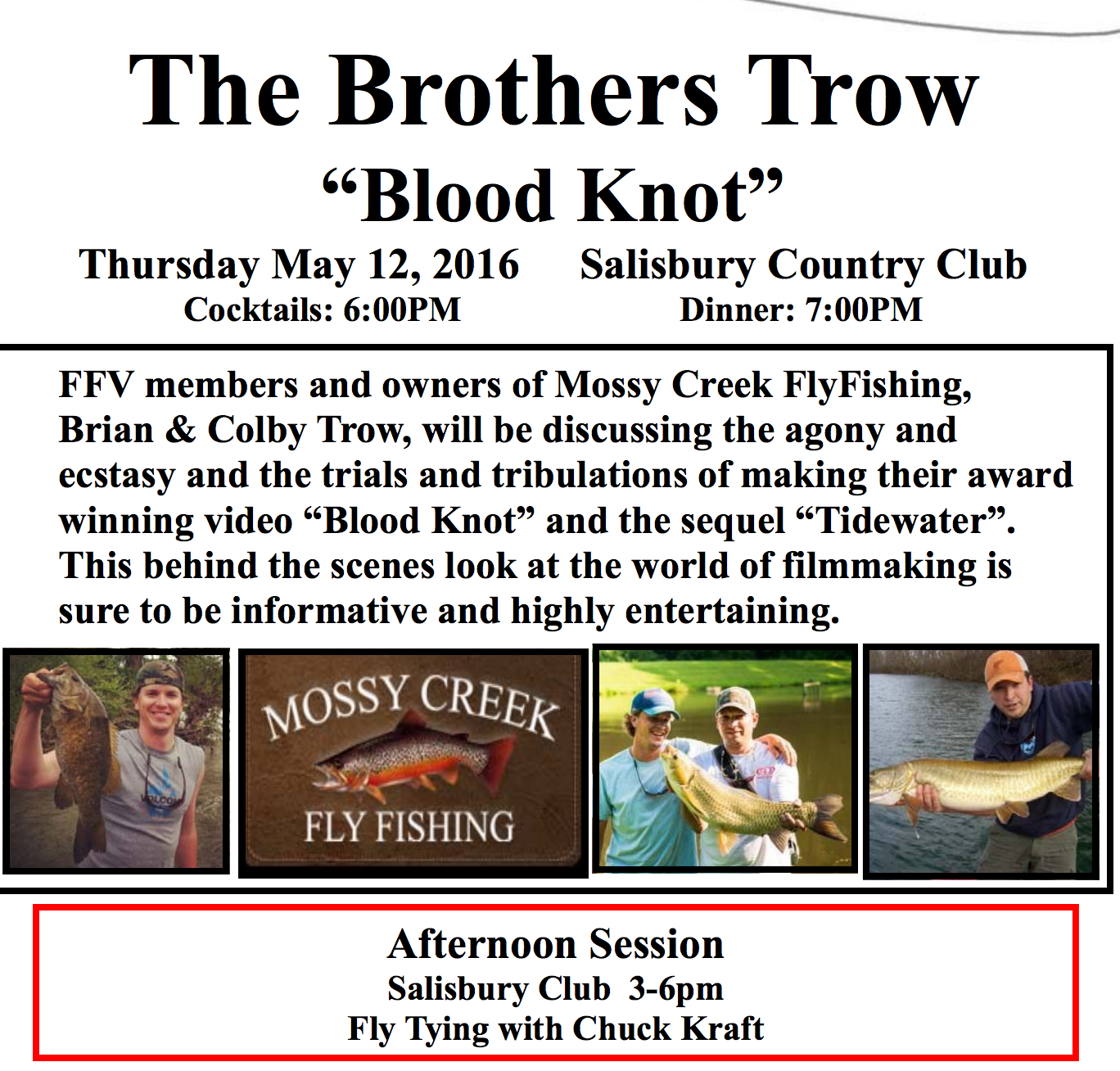 Our May 12th dinner speakers will be FFV members Brian and Colby Trow.