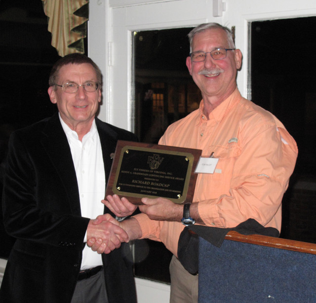 At our January Annual Banquet FFV Ex-officio Richard Roadcap was presented the Kenny Grandstaff Continuing Service award for his many years of dedicated service to the Fly Fishers of Virginia.