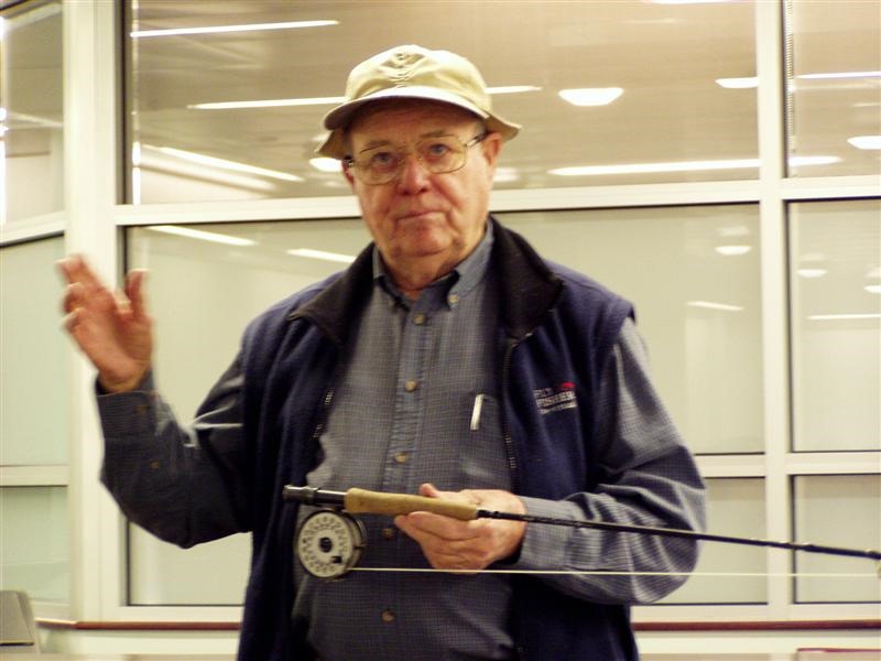 Lefty giving a casting lesson before the FFV 2004 Annual Banquet